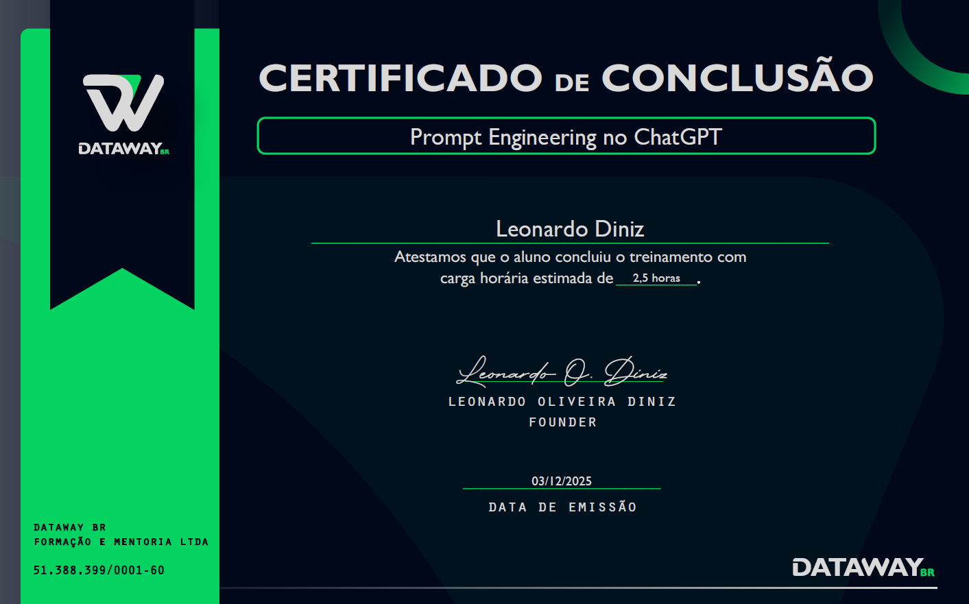 "Após anos estagnado no mercado de contábeis, conversei com o Léo e decidi aprender mais sobre a área. Com os cursos gratuitos, aprendi mais sobre a dados e IA. Estou me sentindo muito mais útil no meu trabalho."