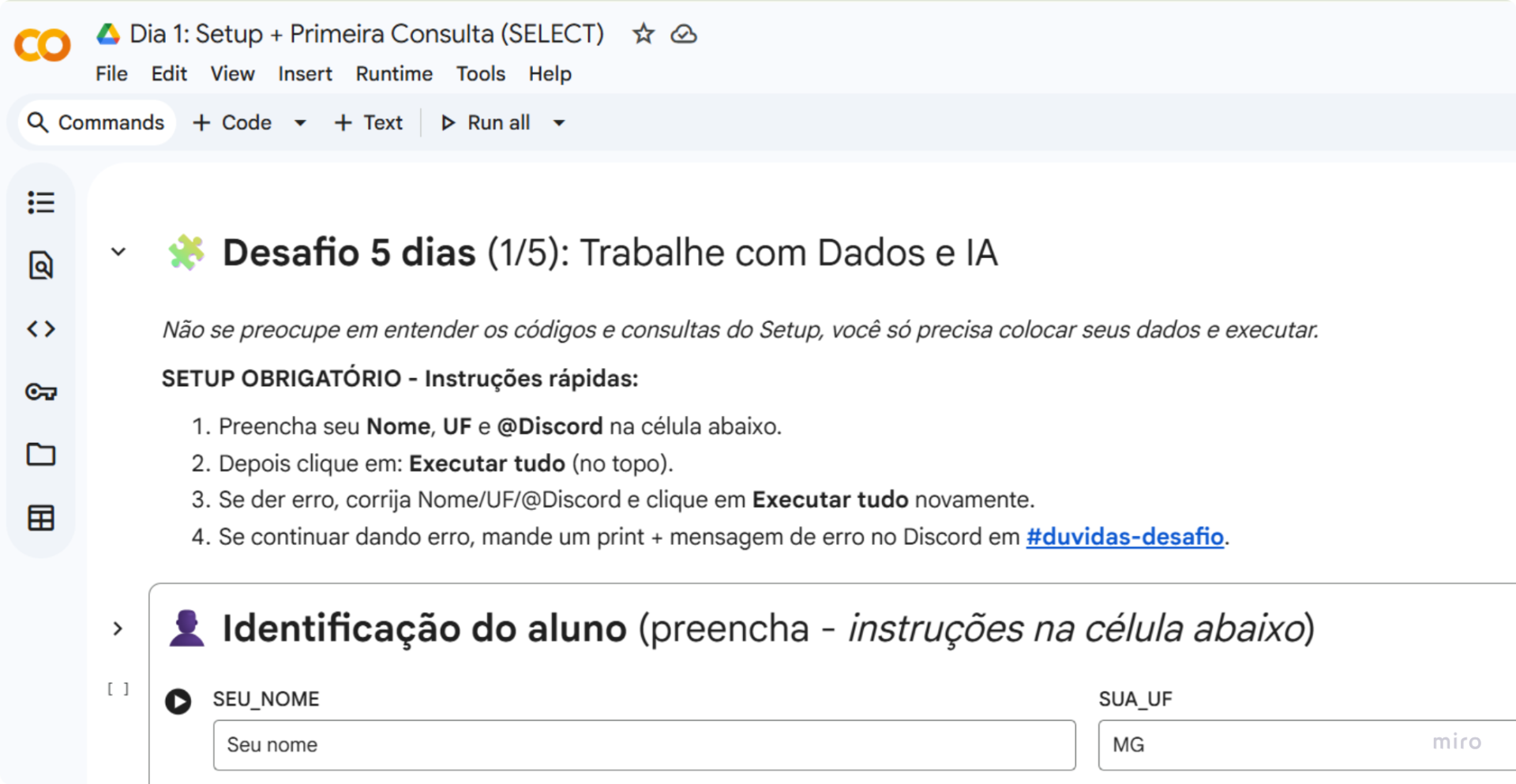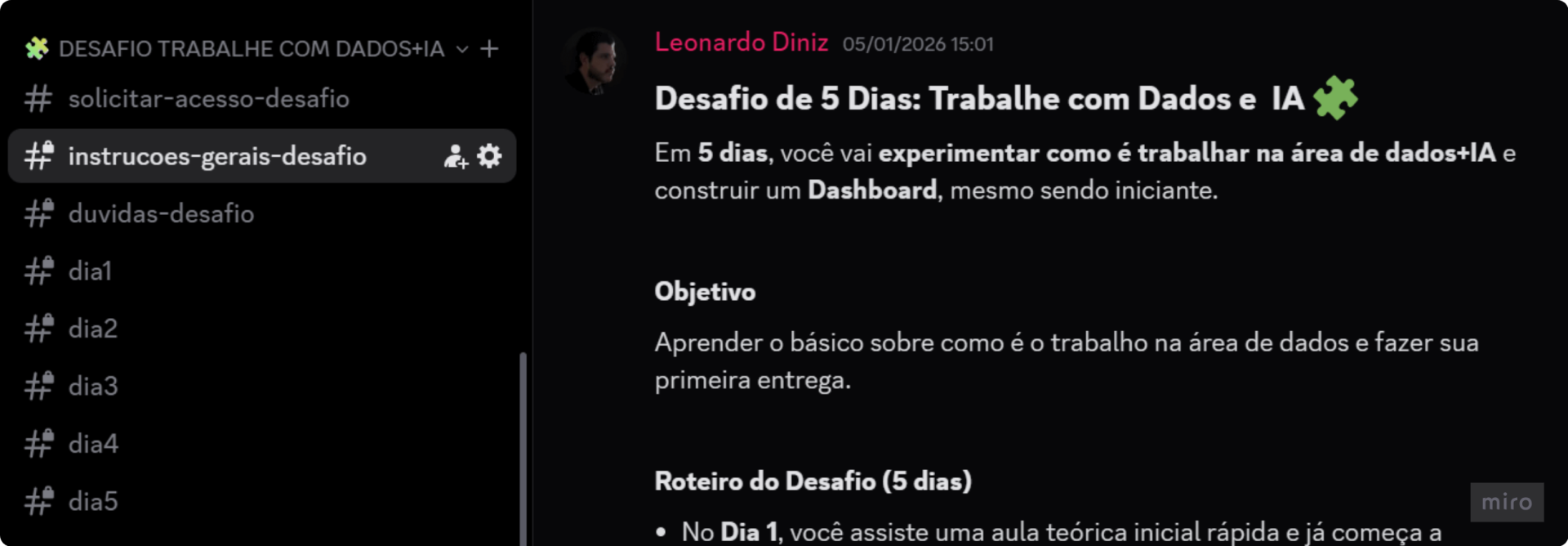 Além das aulas, este desafio inclui um conjunto de canais exclusivos no Discord, onde você tira dúvidas, troca experiências e evolui junto com outros alunos.